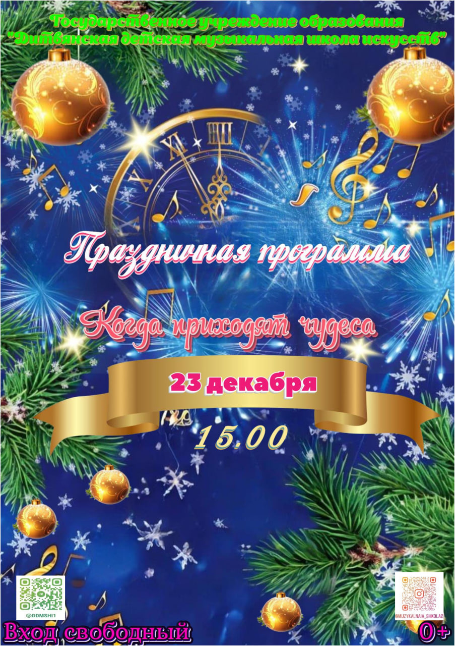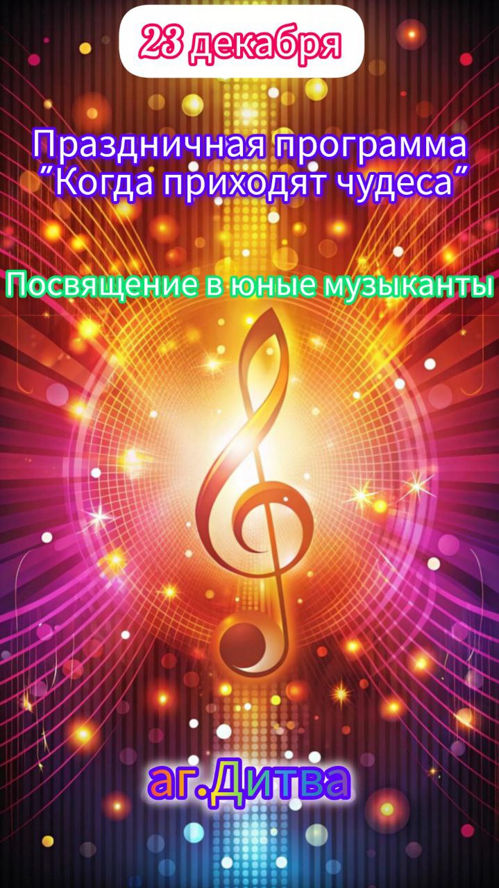 ✅23 декабря в 15.00✅ состоится Праздничная программа ⭐️"КОГДА ПРИХОДЯТ ЧУДЕСА"⭐️и 🎼Посвящение в ЮНЫЕ МУЗЫКАНТЫ🎼